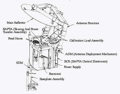 Measures the microwave brightness temperatures of the ocean surface, which are sensitive to salinity and surface roughness. Radiometer measurements are complemented by the scatterometer system measuring ocean roughness.