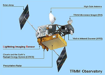 TRMM is devoted to determining rainfall in the tropics and subtropics of the Earth through the use of a precipitation radar and radiometer as well as optical instruments.